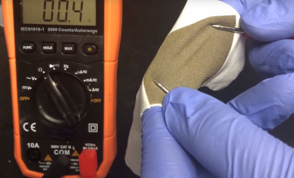 As they state, "The particle-free functional ink can conformally coat individual fibers to create a conductive network within the textile structure without changing the feel, texture, durability, and mechanical behavior of the textile.". Furthermore, the conductivity of the traces was equivalent to what is typically achieved using our FR-4 or Kapton sheets, reaching "0.2 ± 0.025 and 0.9 ± 0.02 Ω/□ on polyester woven and polyester knit fabrics is achieved, respectively."
